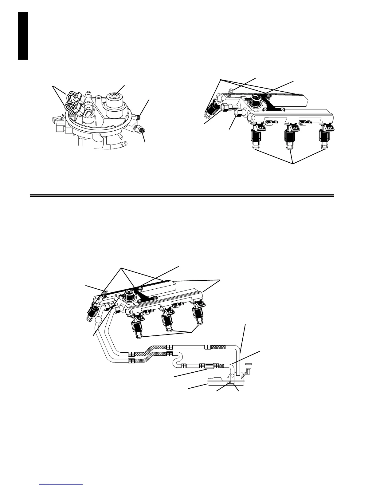 the fuel pressure regulator and fuel injectors. Fuel pressure regulator divides fuel between the pressure