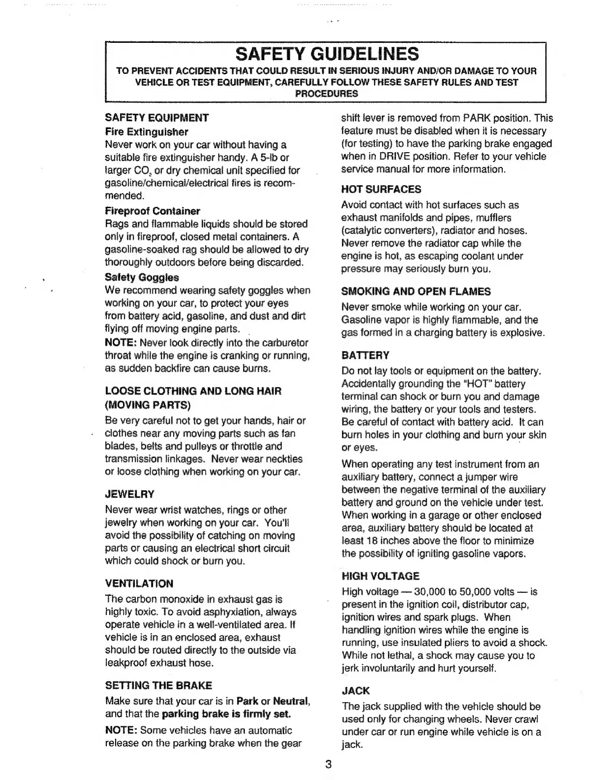 Actron Sunpro CP7673 - Safety Guidelines; Safety Equipment; Personal Safety Precautions; Operational Safety Measures