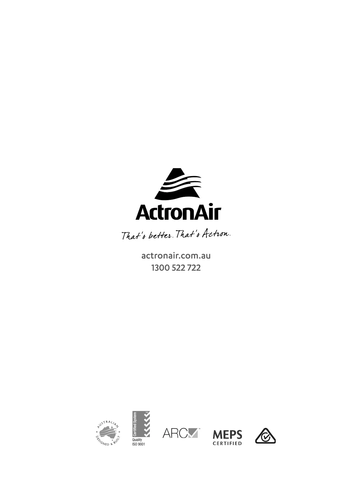 ActronAir is constantly seeking ways to improve the design of it’s products, therefore specifications are subject to change without notice.
