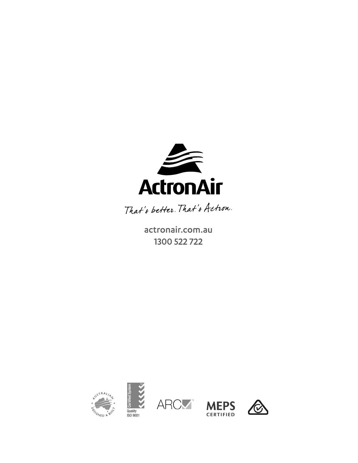ActronAir is constantly seeking ways to improve the design of its products, therefore specifications are subject to change without notice.