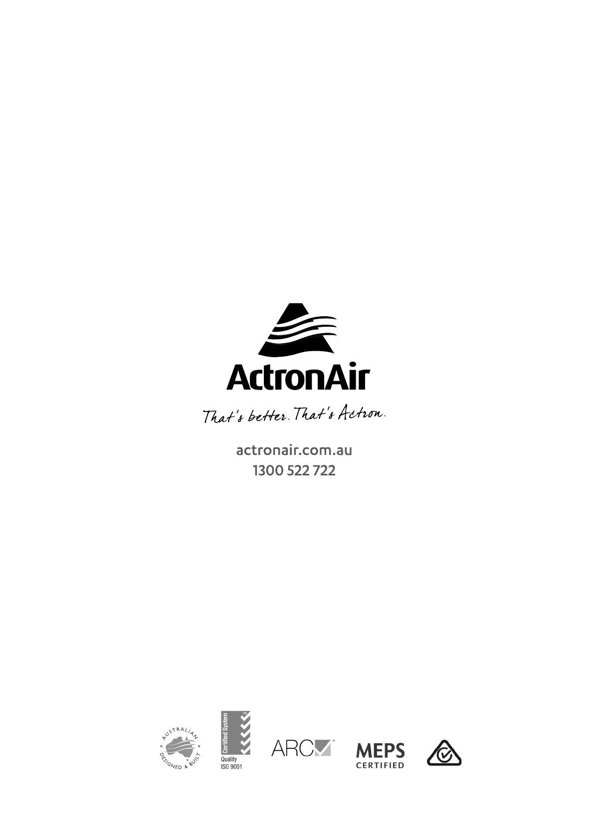 ActronAir is constantly seeking ways to improve the design of it’s products, therefore specifications are subject to change without notice.
