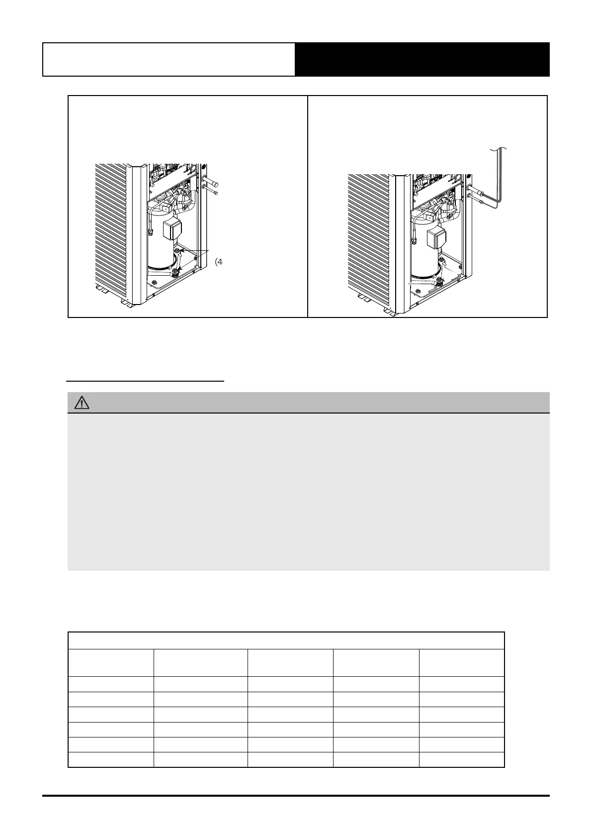 • Firmly tighten the set bolts back the compressors onto