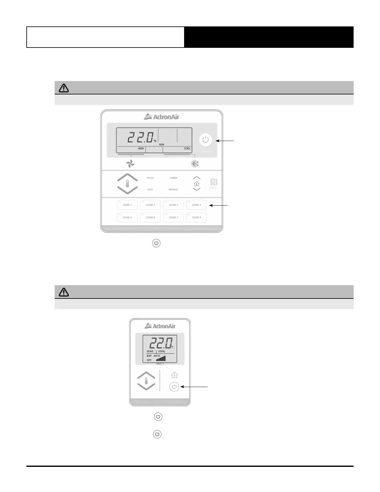 mode (COOL or HEAT). Press the button to turn off the zone.