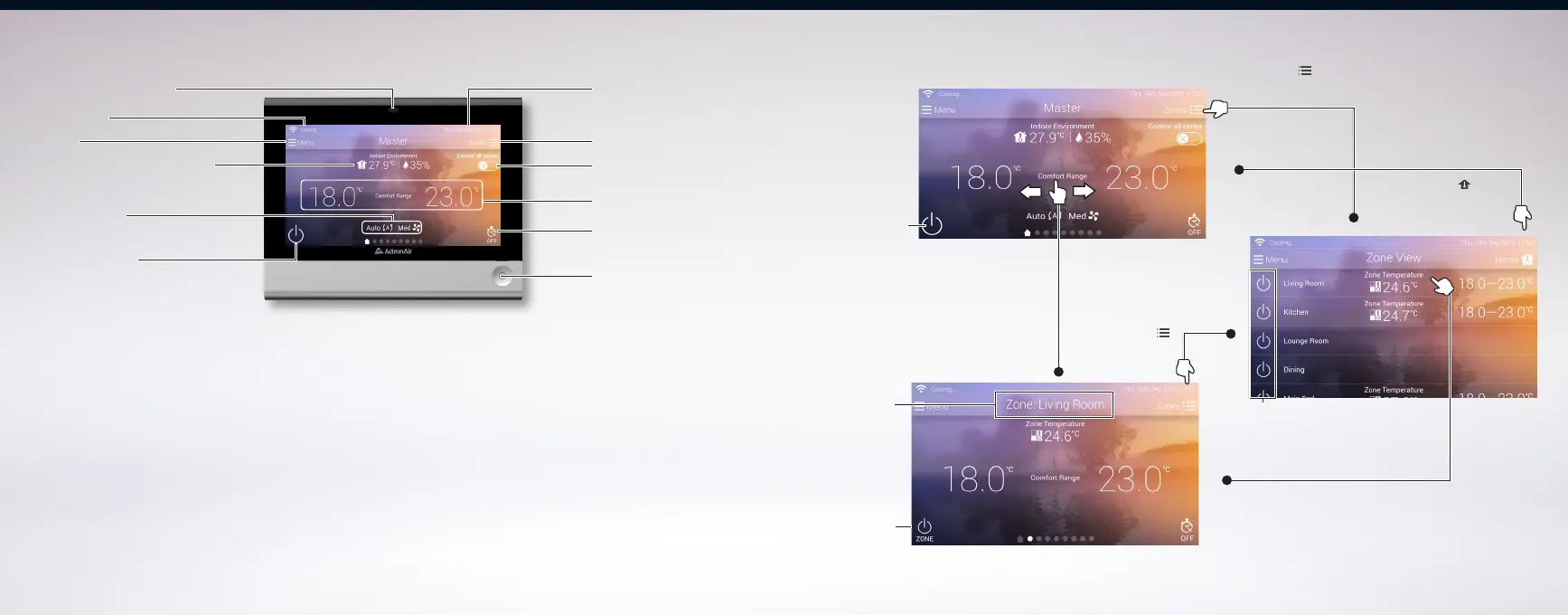 Set Temperature - Touch to adjust set temperature of the room