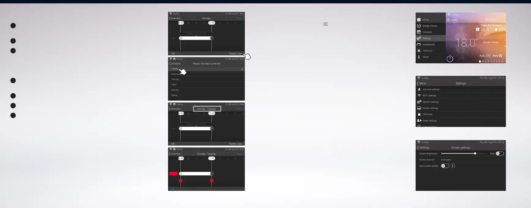Touch the day from the list, example ‘Tuesday’, Then touch ‘Schedule’ to exit.