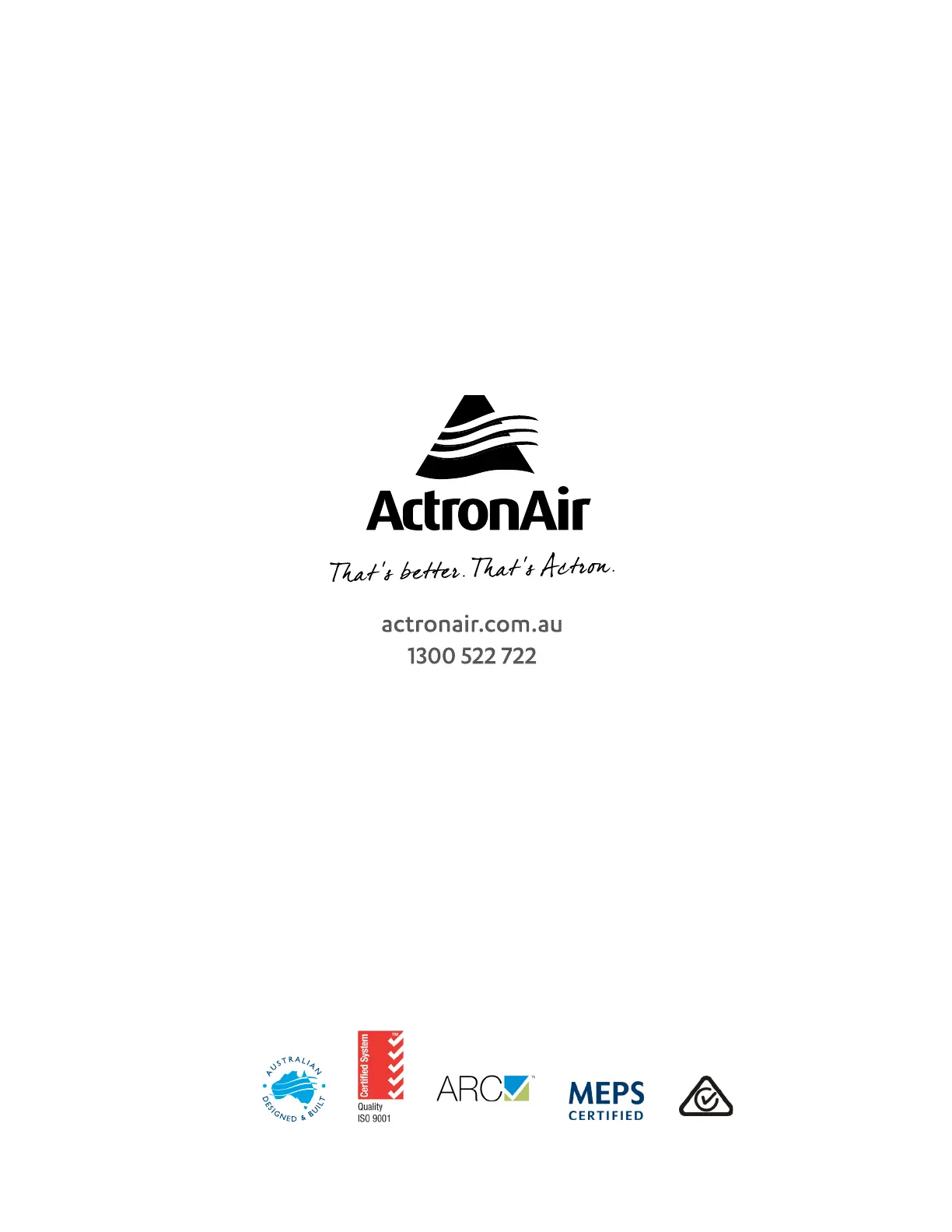 ActronAir is constantly seeking ways to improve the design of its products. Therefore, specifications are subject to change without notice.