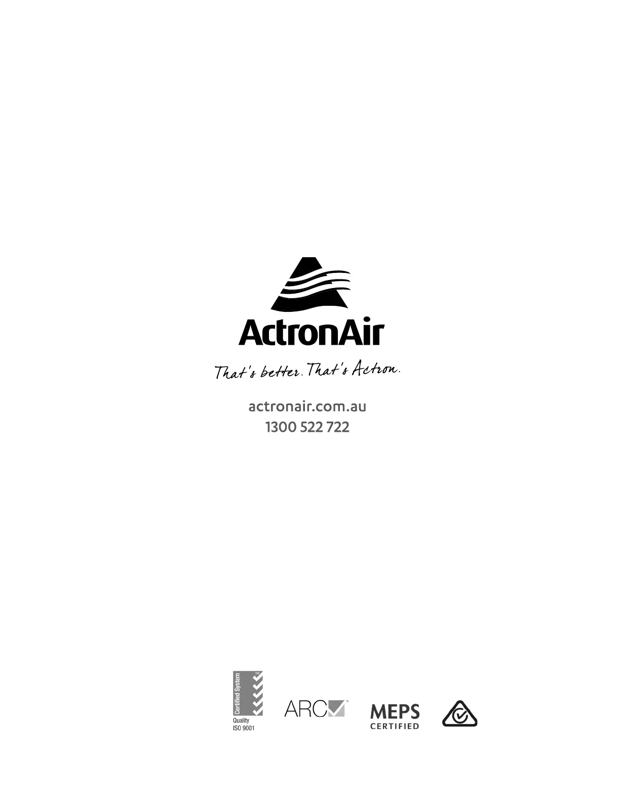 ActronAir is constantly seeking ways to improve the design of its products. Therefore, specifications are subject to change without notice.