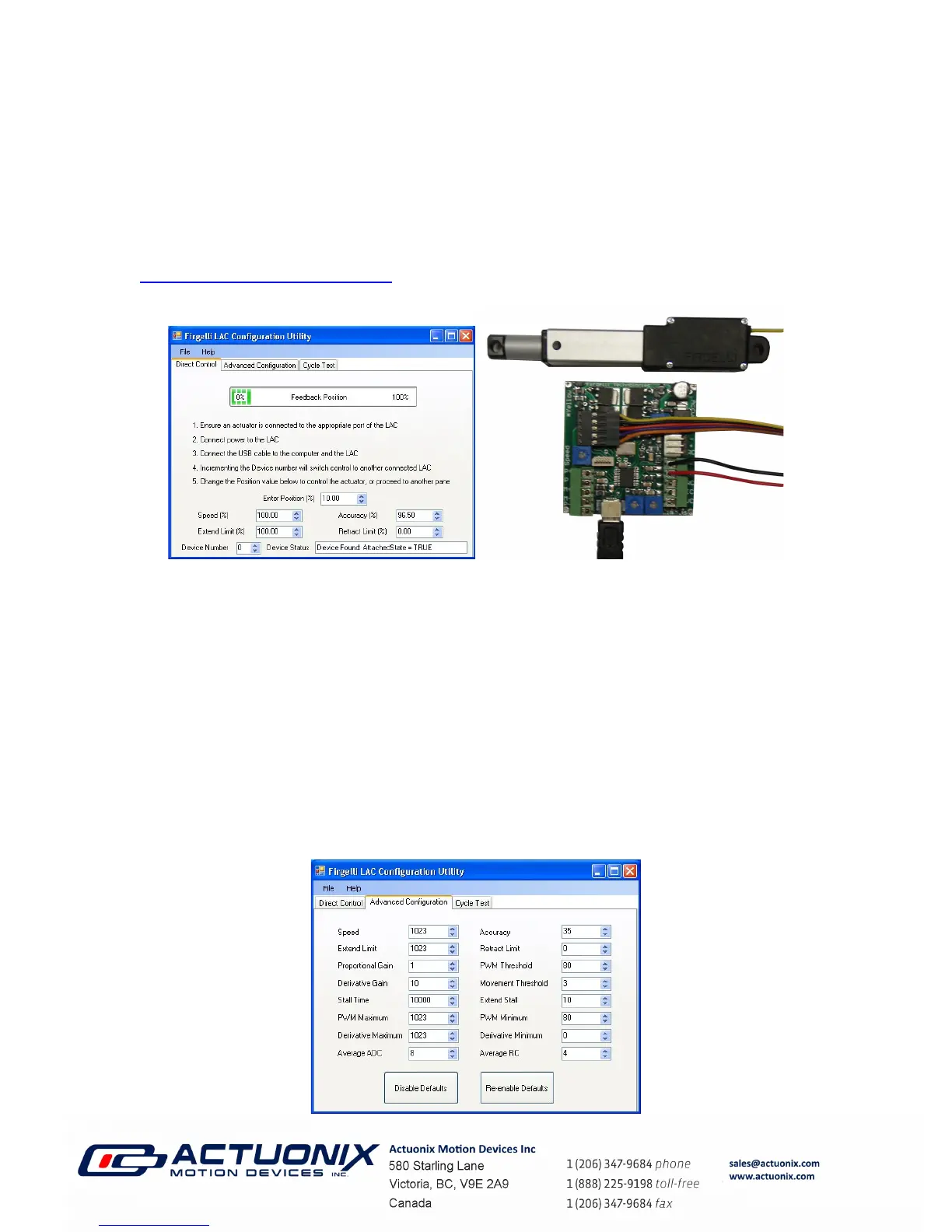 The Direct Control Tab, shown above, allows simple USB control of Position and the