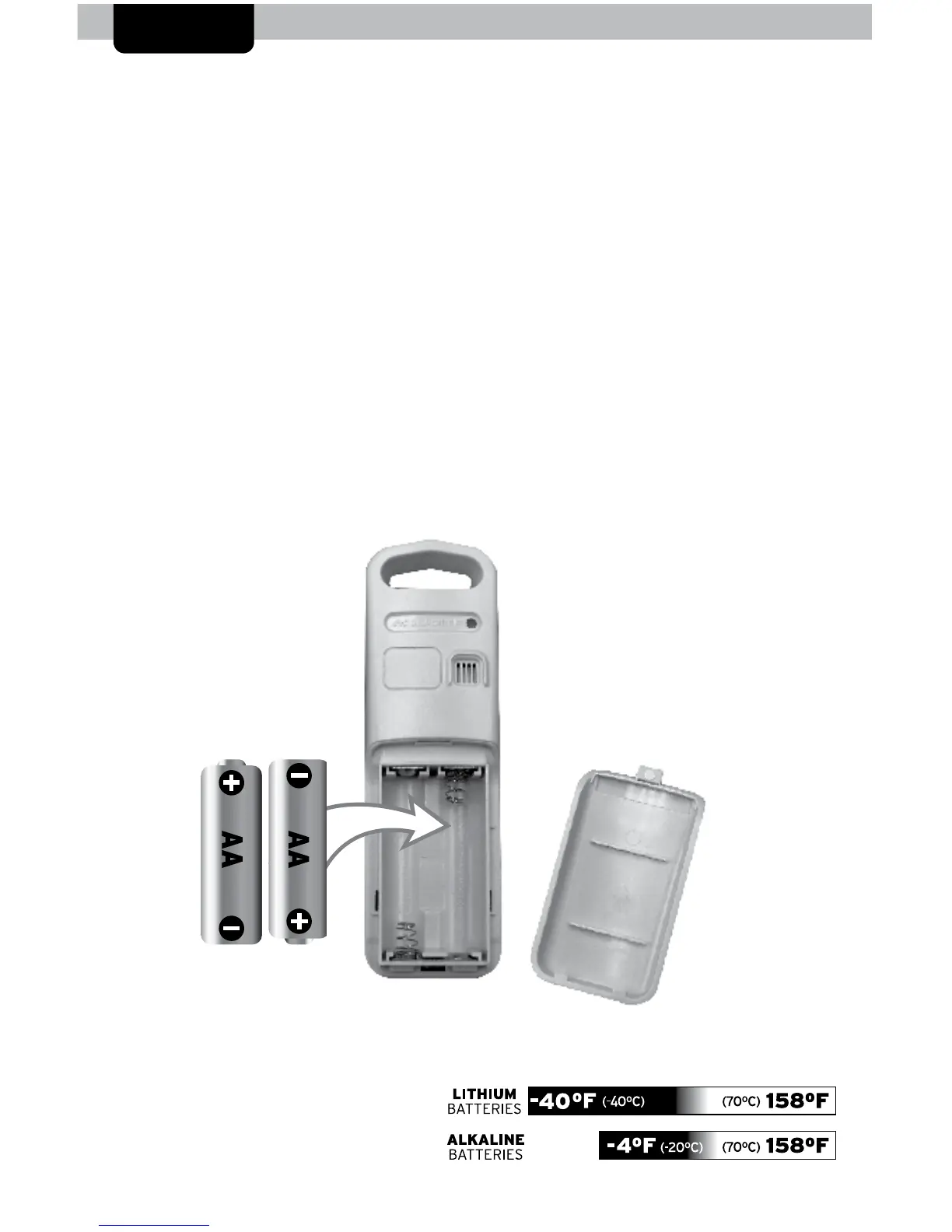 2. Insert 2 x AA batteries into the