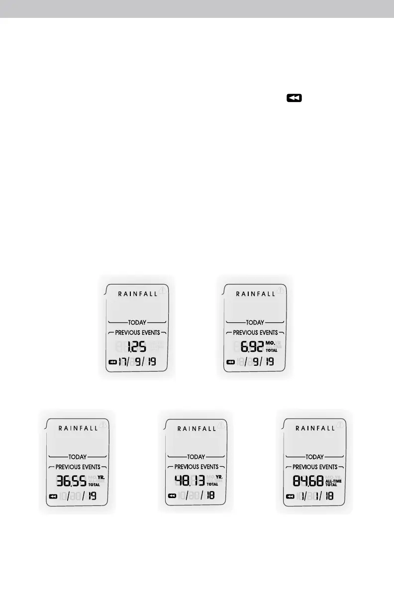 Press the “RAINFALL” button to review rainfall records. The icon is shown