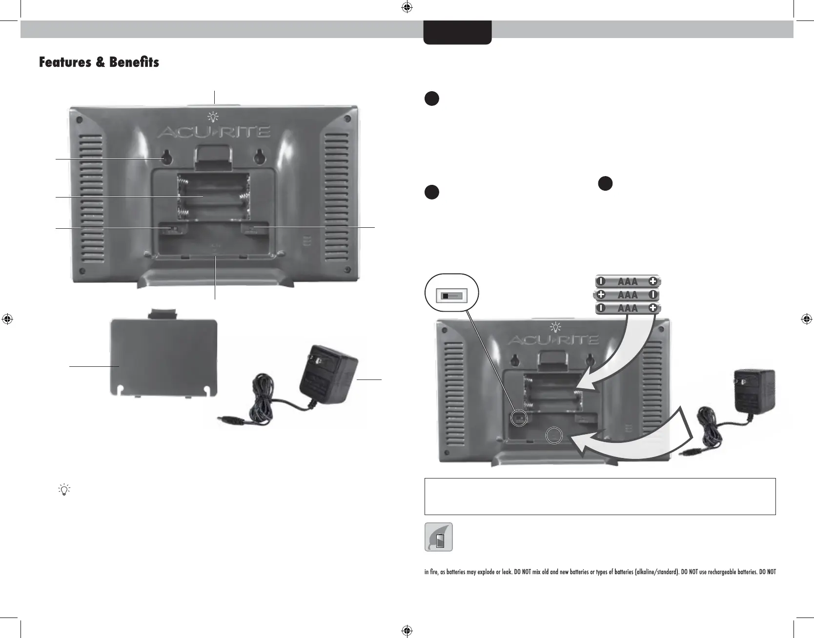 be used for an extended period of time. Follow the polarity (+/-) diagram in the battery compartment. Promptly remove dead batteries from the device. Dispose of