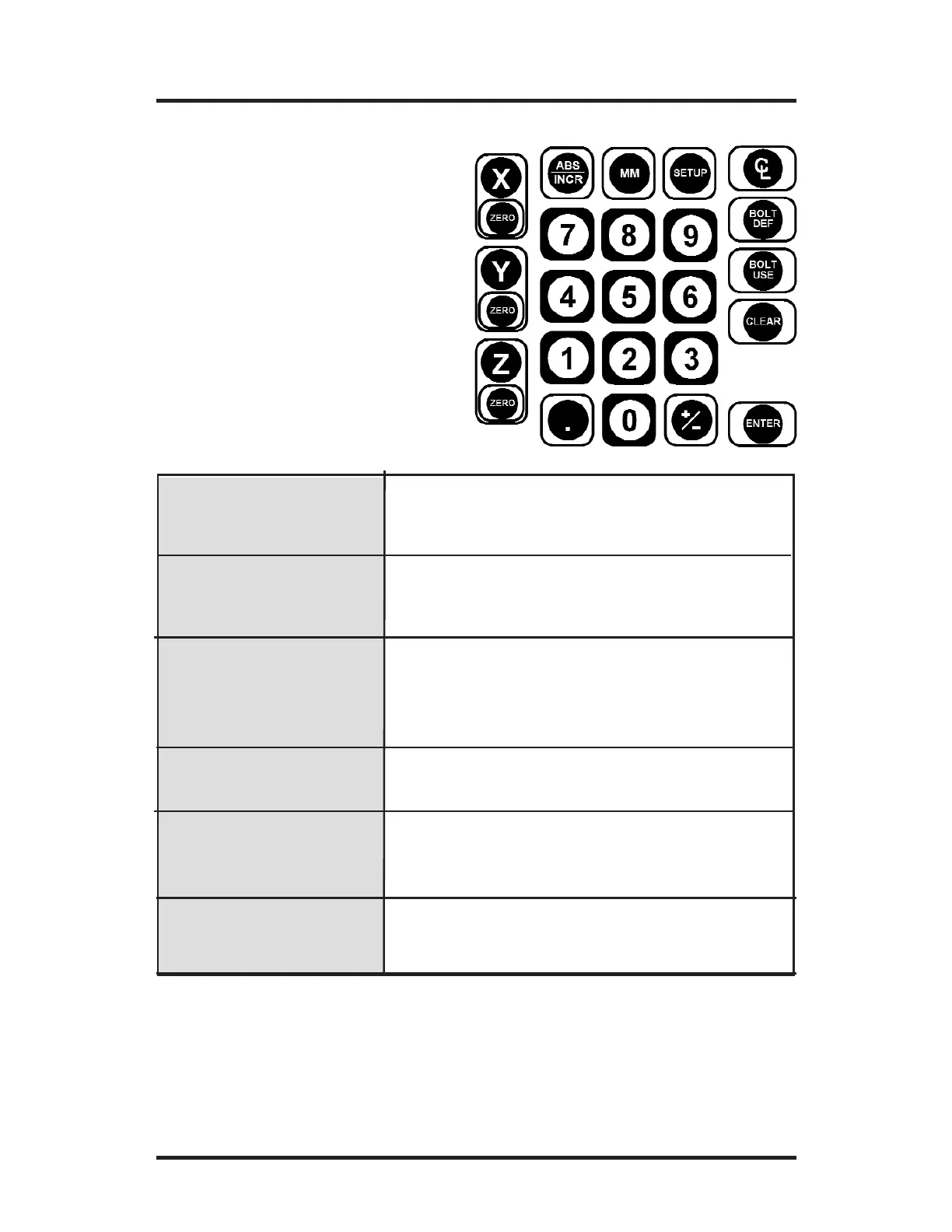 keypad. Each key’s function is