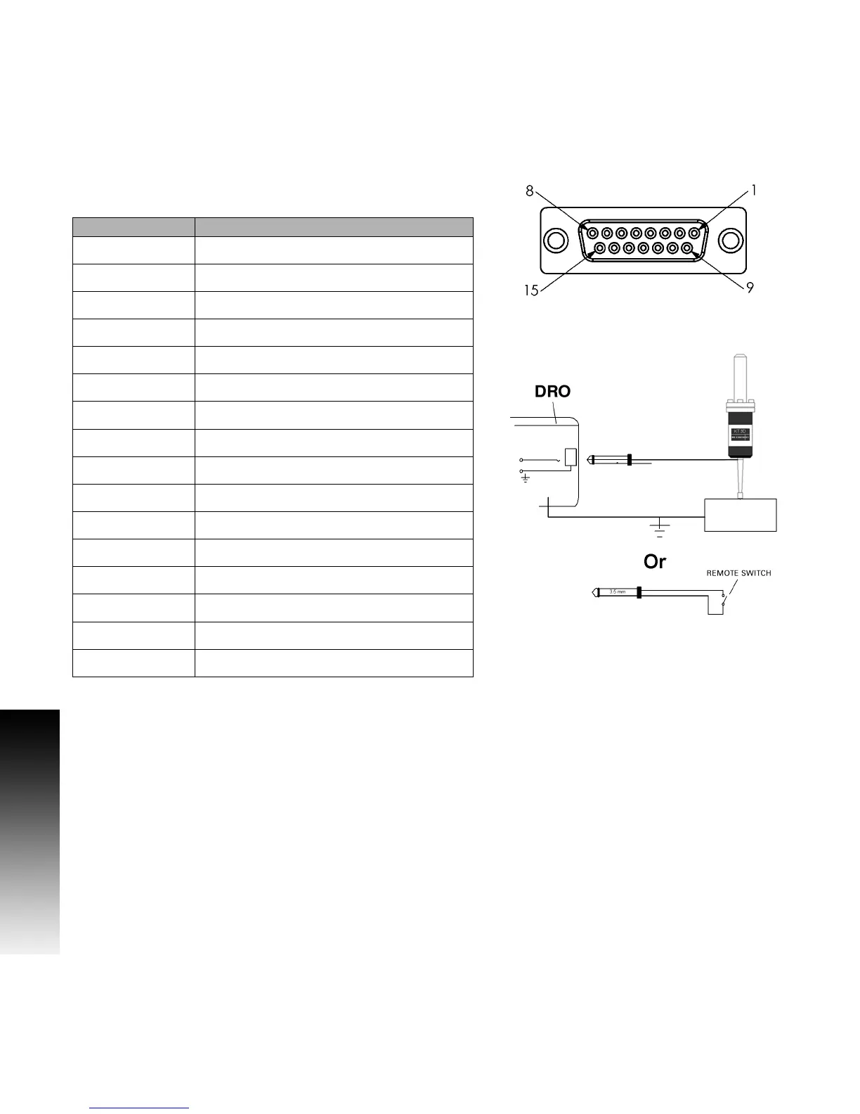 ACU-RITE 200S READOUTS - I;O Connections; Pin layout for Electronic Edge Finder