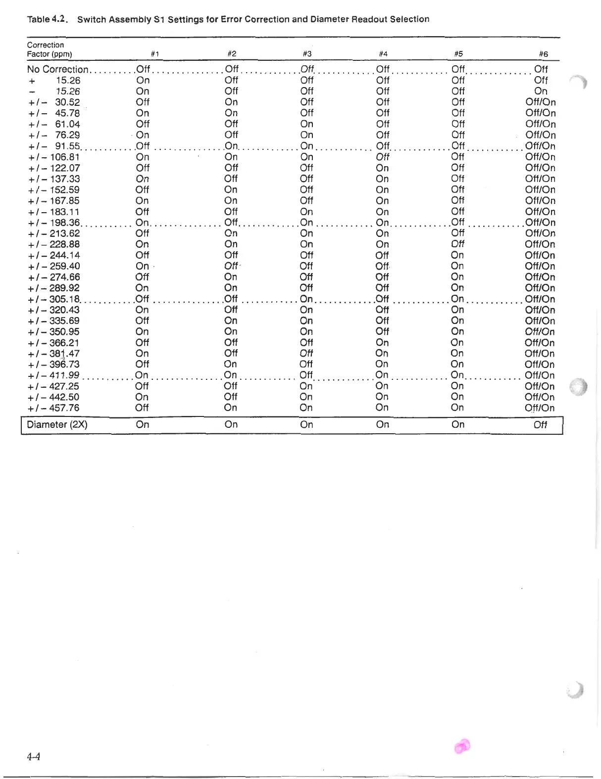 ACU-RITE III - Switch Assembly S1 Settings