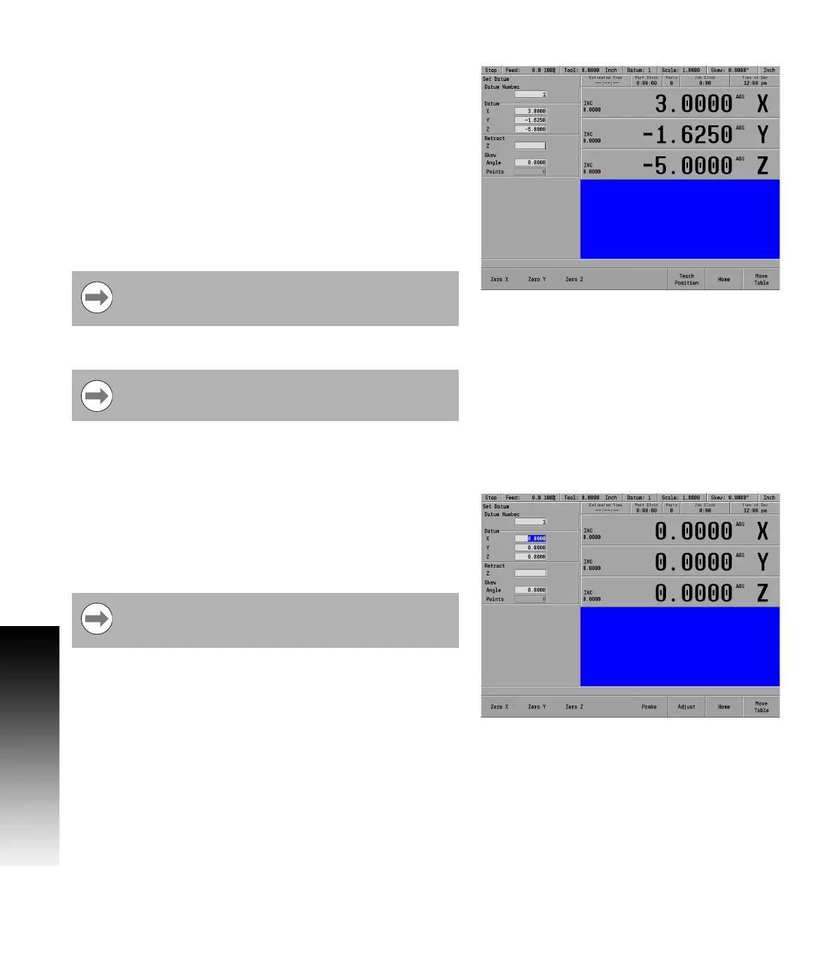 When a Datum field is selected (X, Y or Z), the Probe softkey is