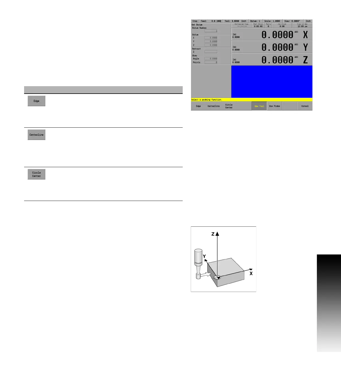 performed by pressing the appropriate softkey: Edge, Centerline, or