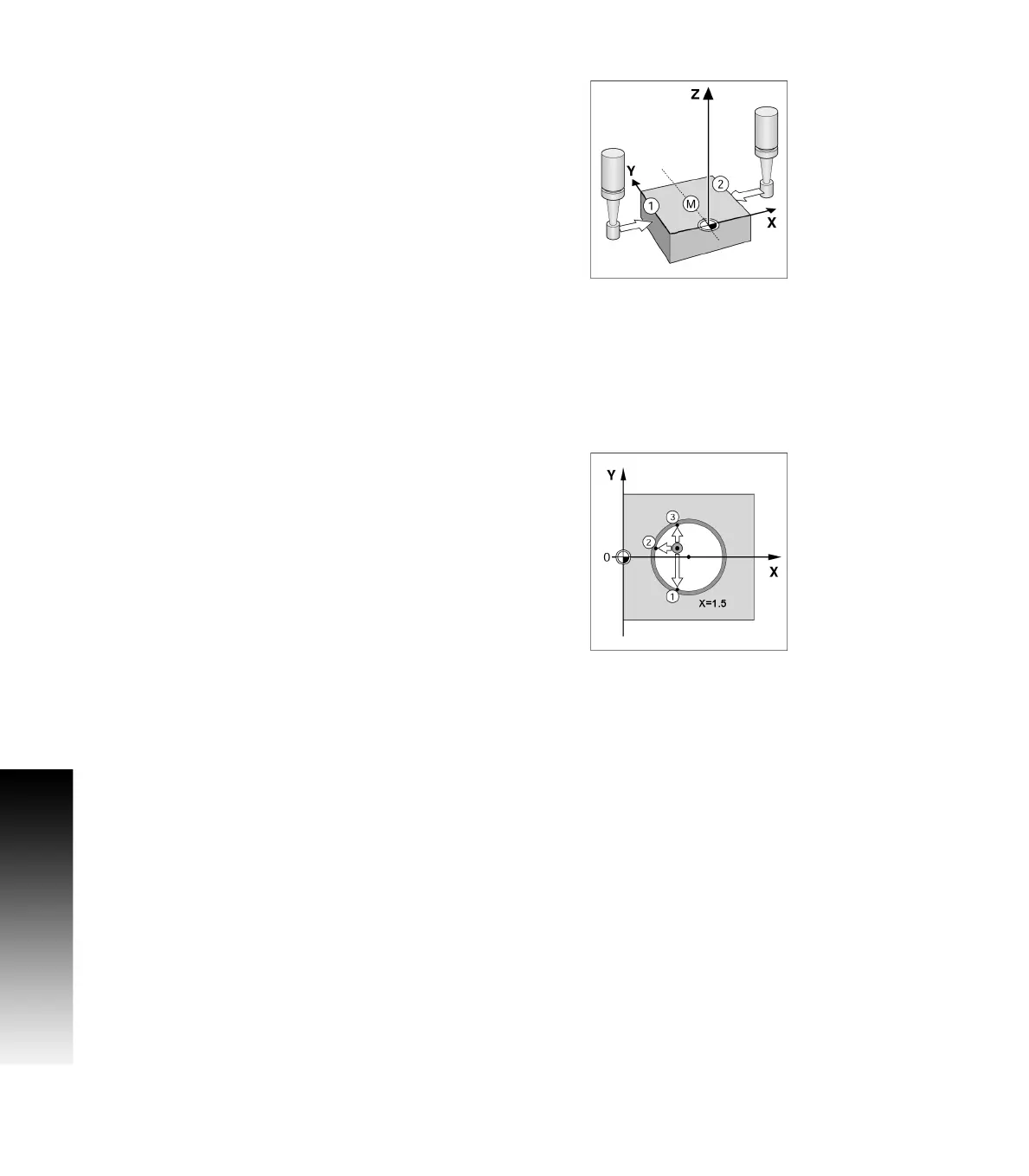 The center of a circular feature is determined by probing 3 edges