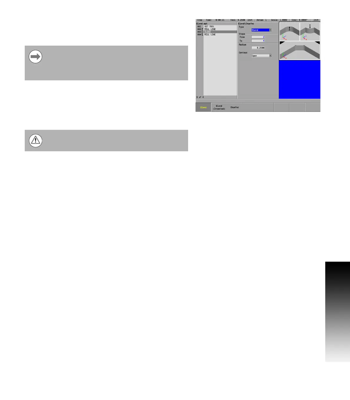 Milling soft key, and select Blend (Arc) from the popup menu.