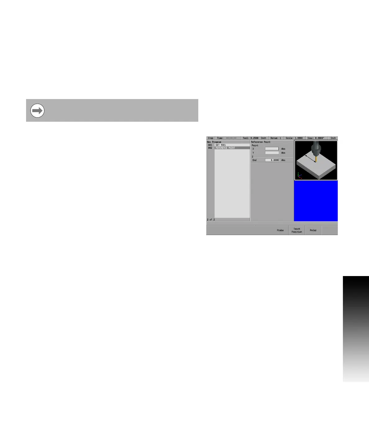 Press the USE key. The reference point will show graphically at the