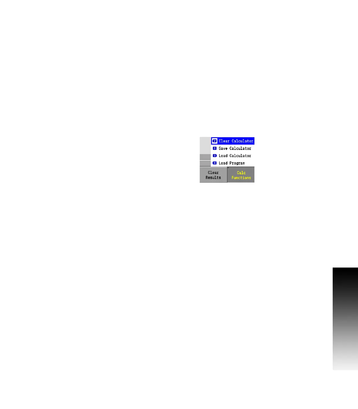 Pressing the Calc Function soft key opens a pop-up menu for