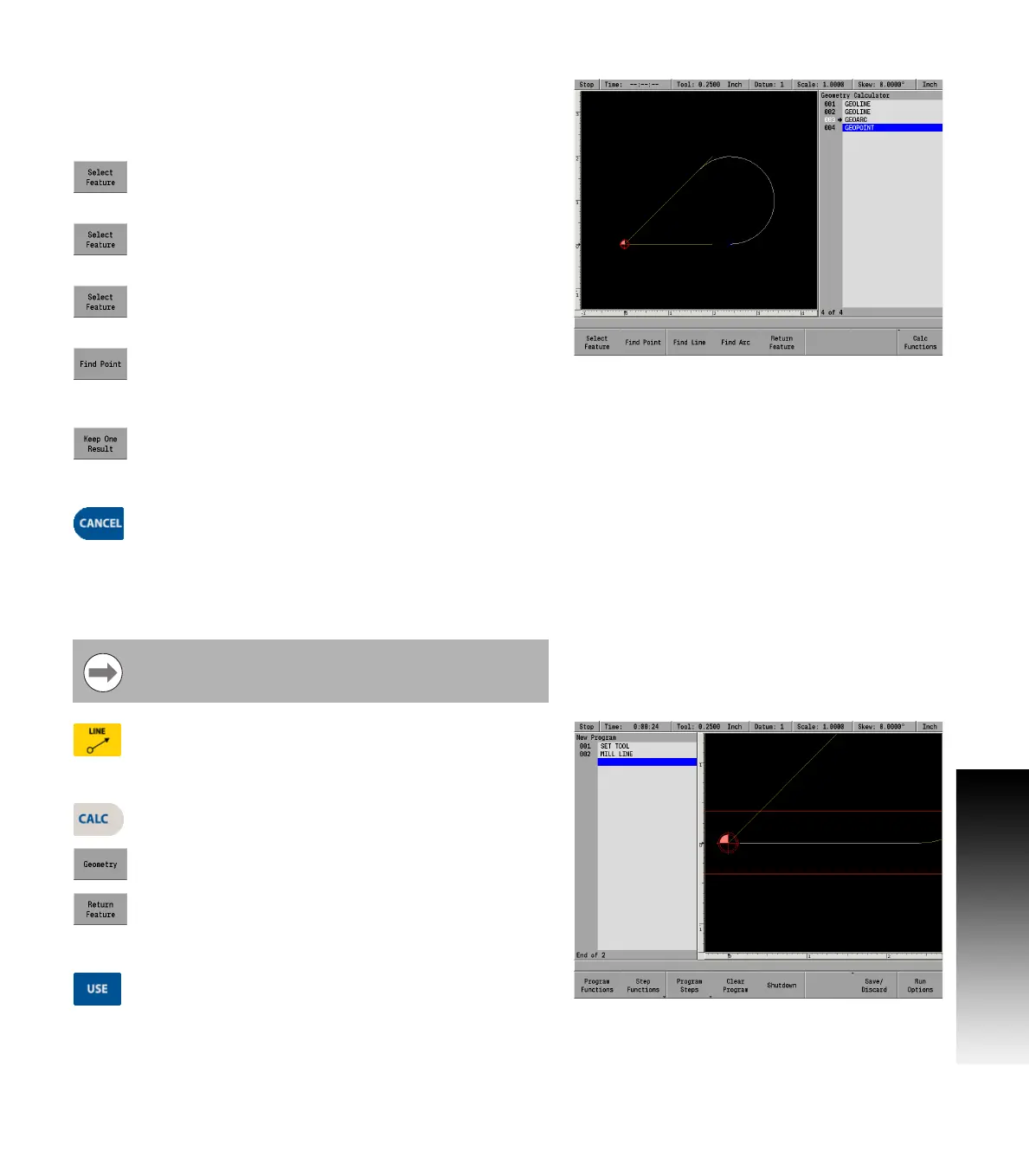Return Feature soft key, GeoCalc will transfer the feature you’ve