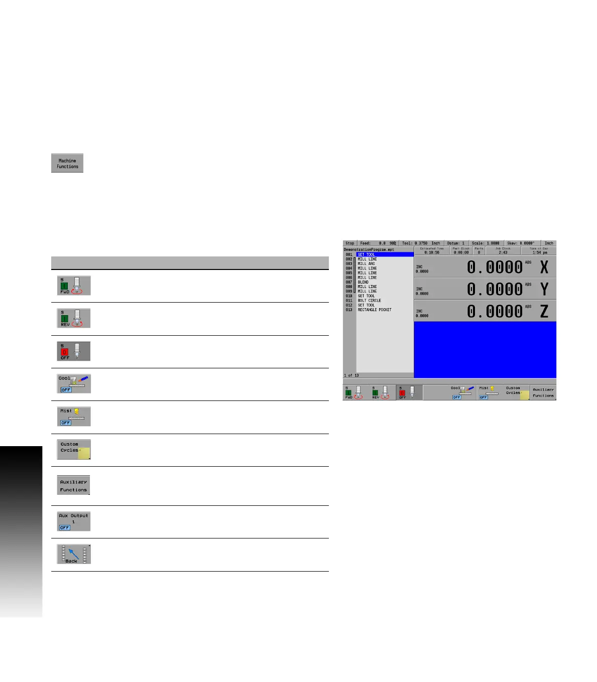 The Machine Functions Menu has the following soft keys: