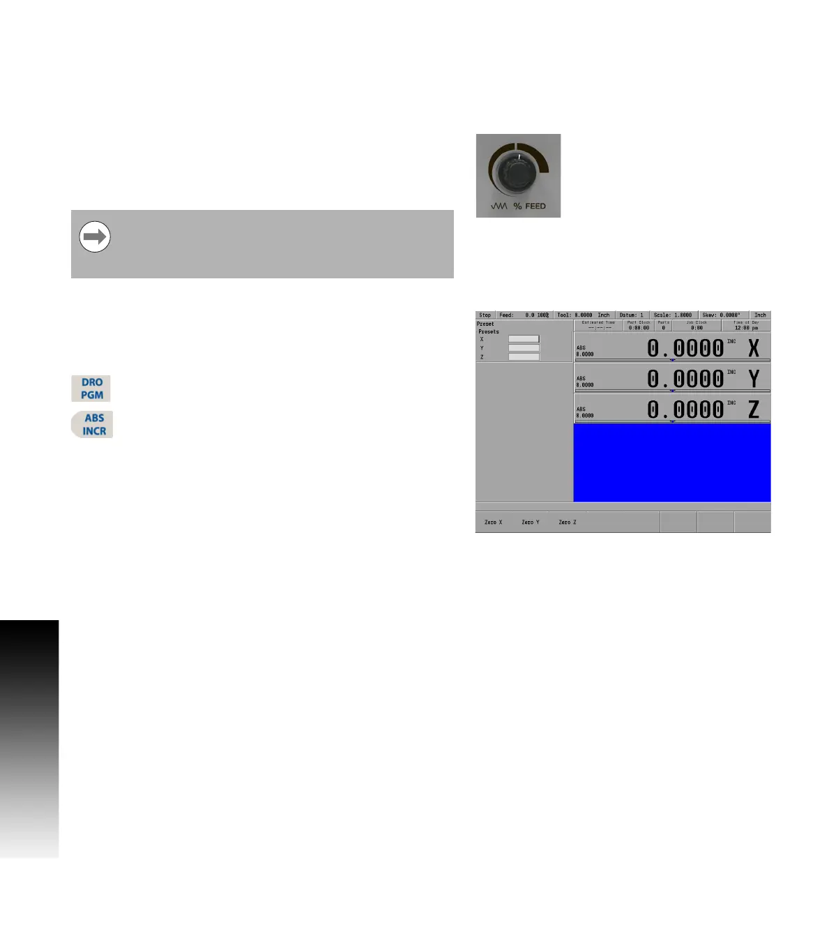 The INCR display may be set to zero at the machines current location.