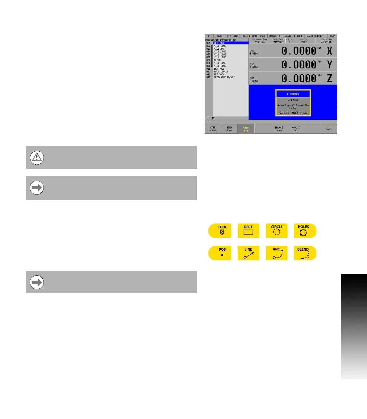 A 3 axes system allows the Z axis to be moved by selecting the soft