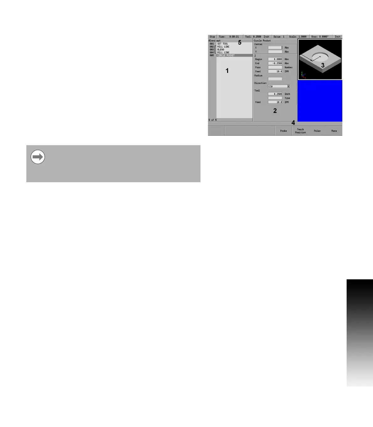 When programming a machining step, the display changes according