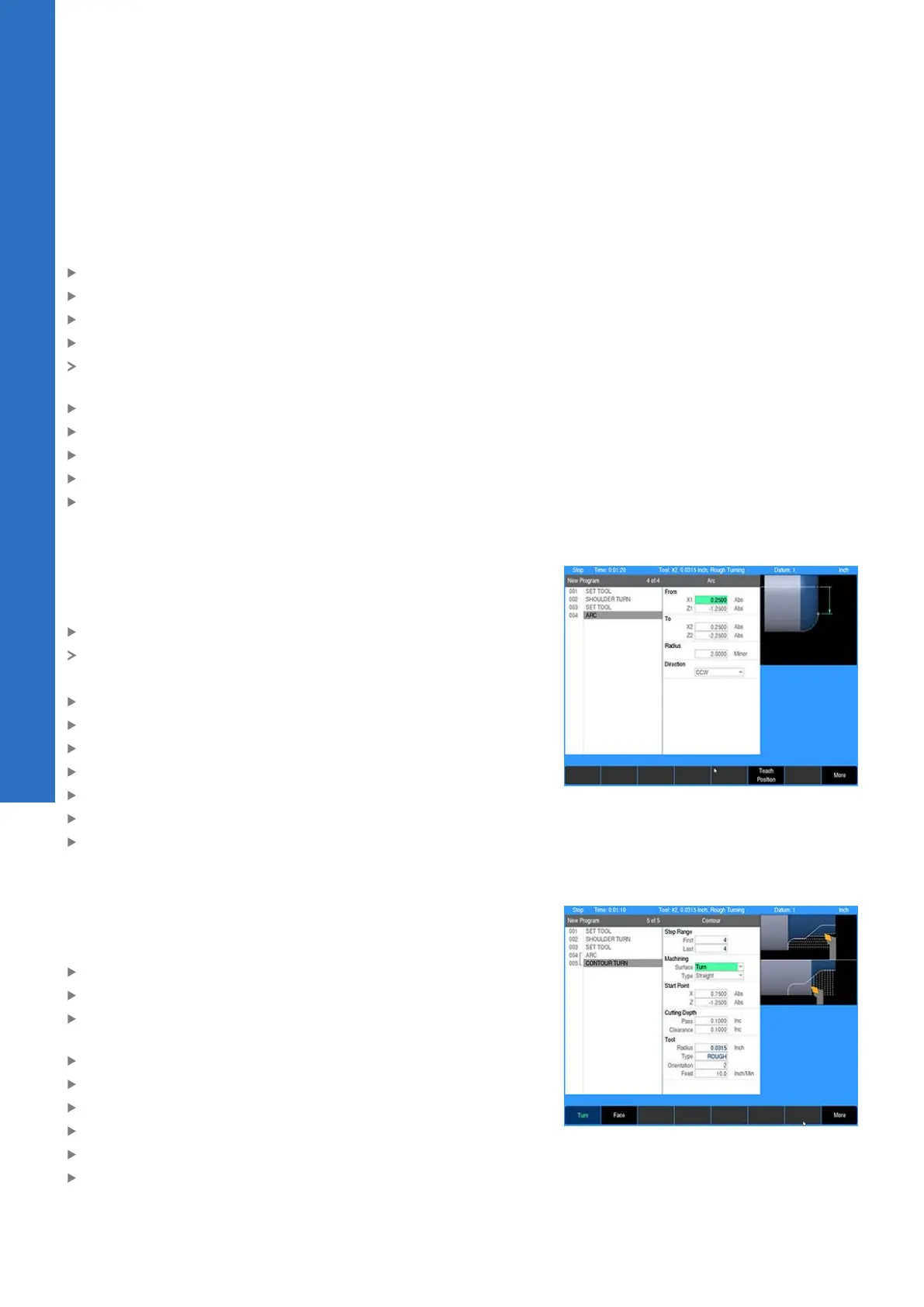 Press the Turn soft key for longitudinal machining along the