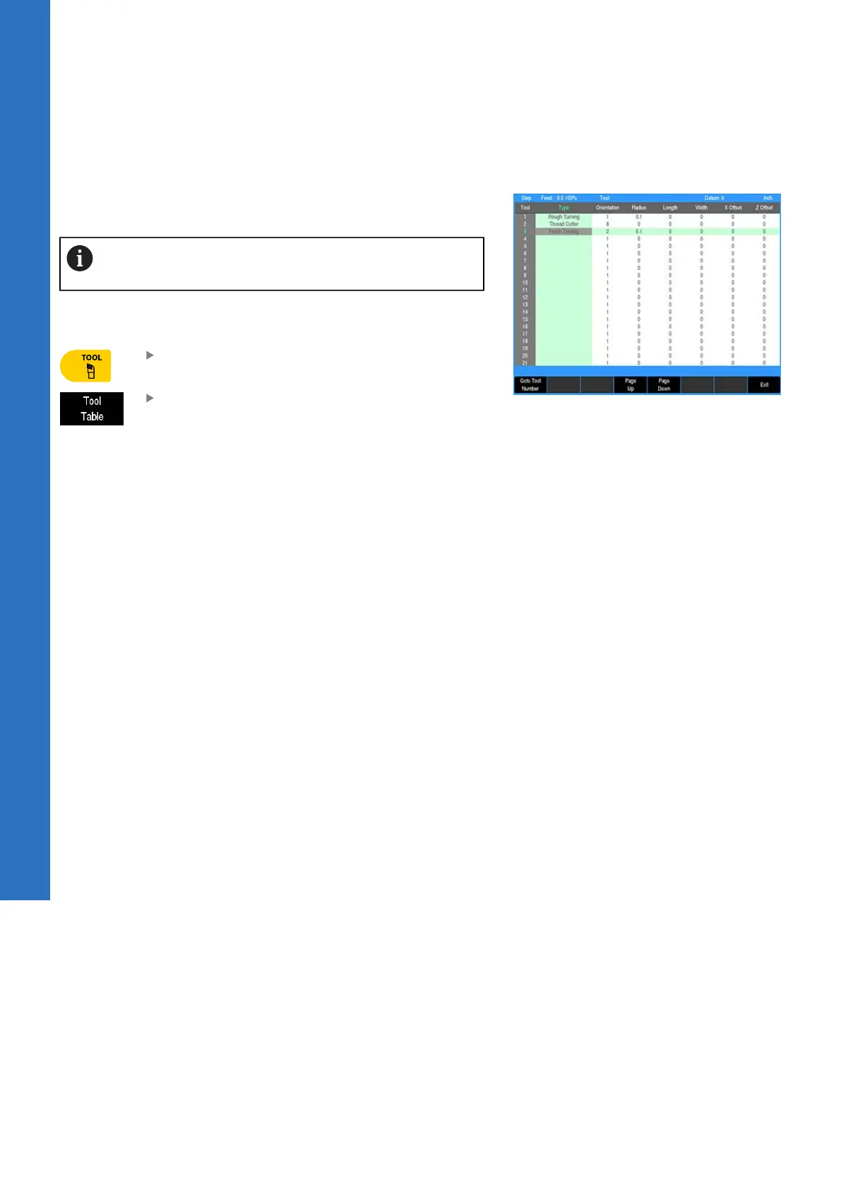 Press the Tool Table soft key