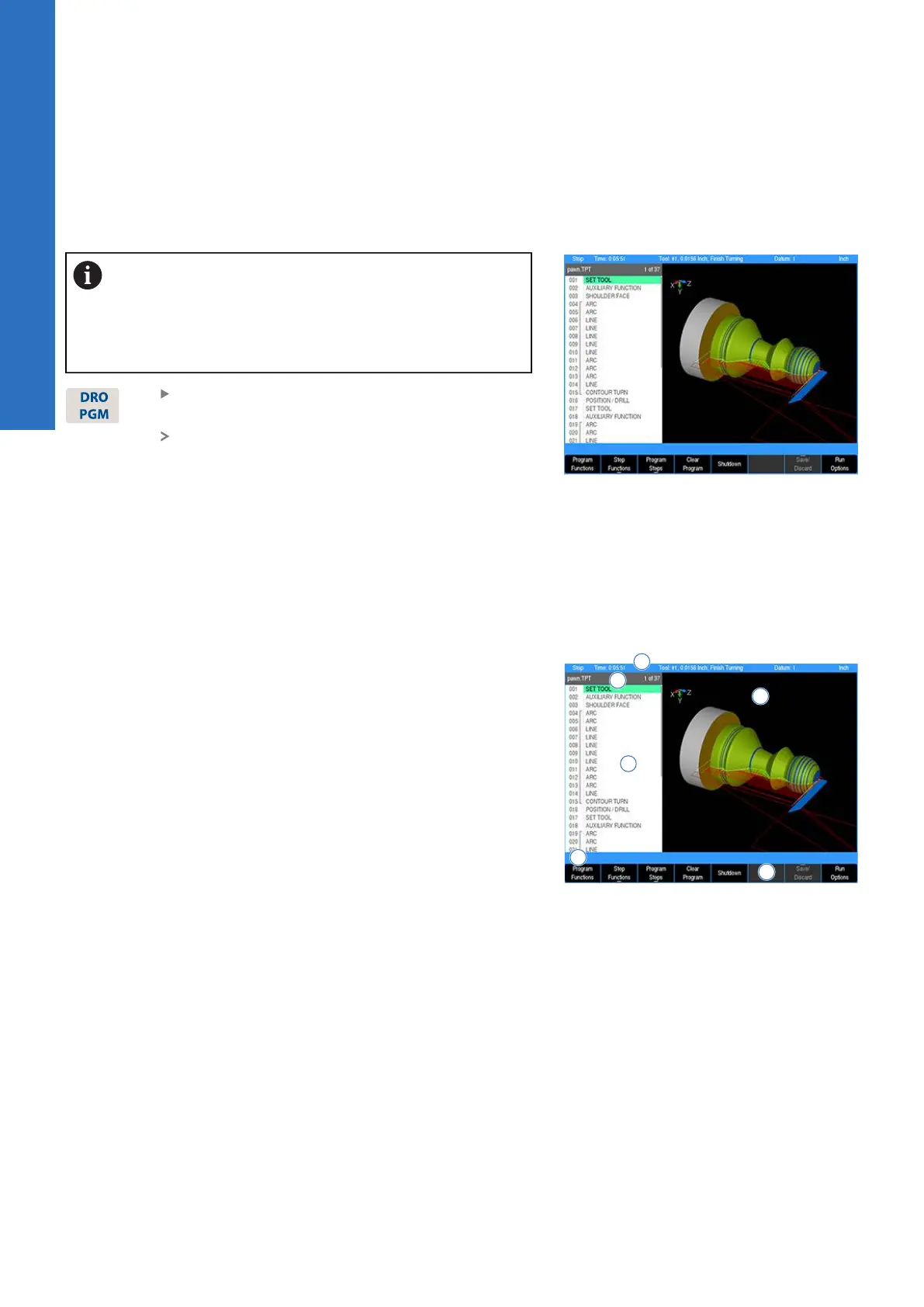 as it is on the DRO mode display. The Program Functions soft key