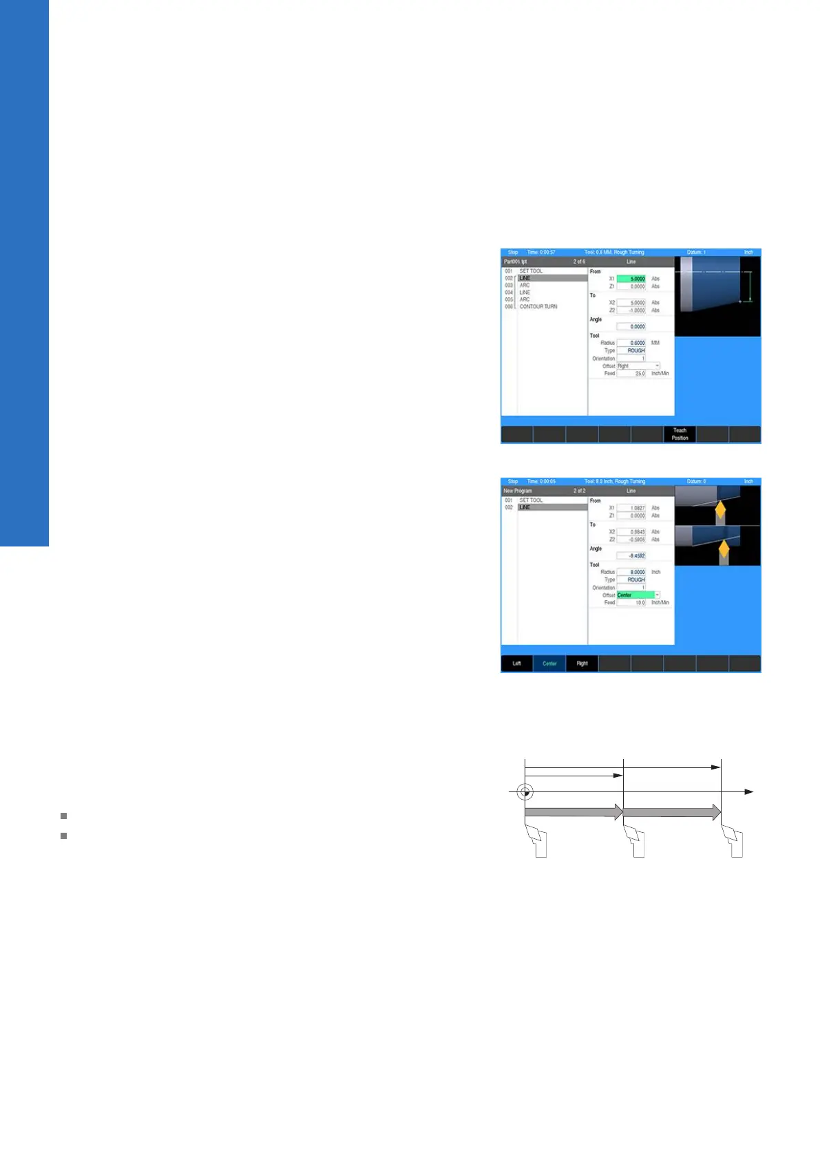 The control will calculate the actual tool path when using left and