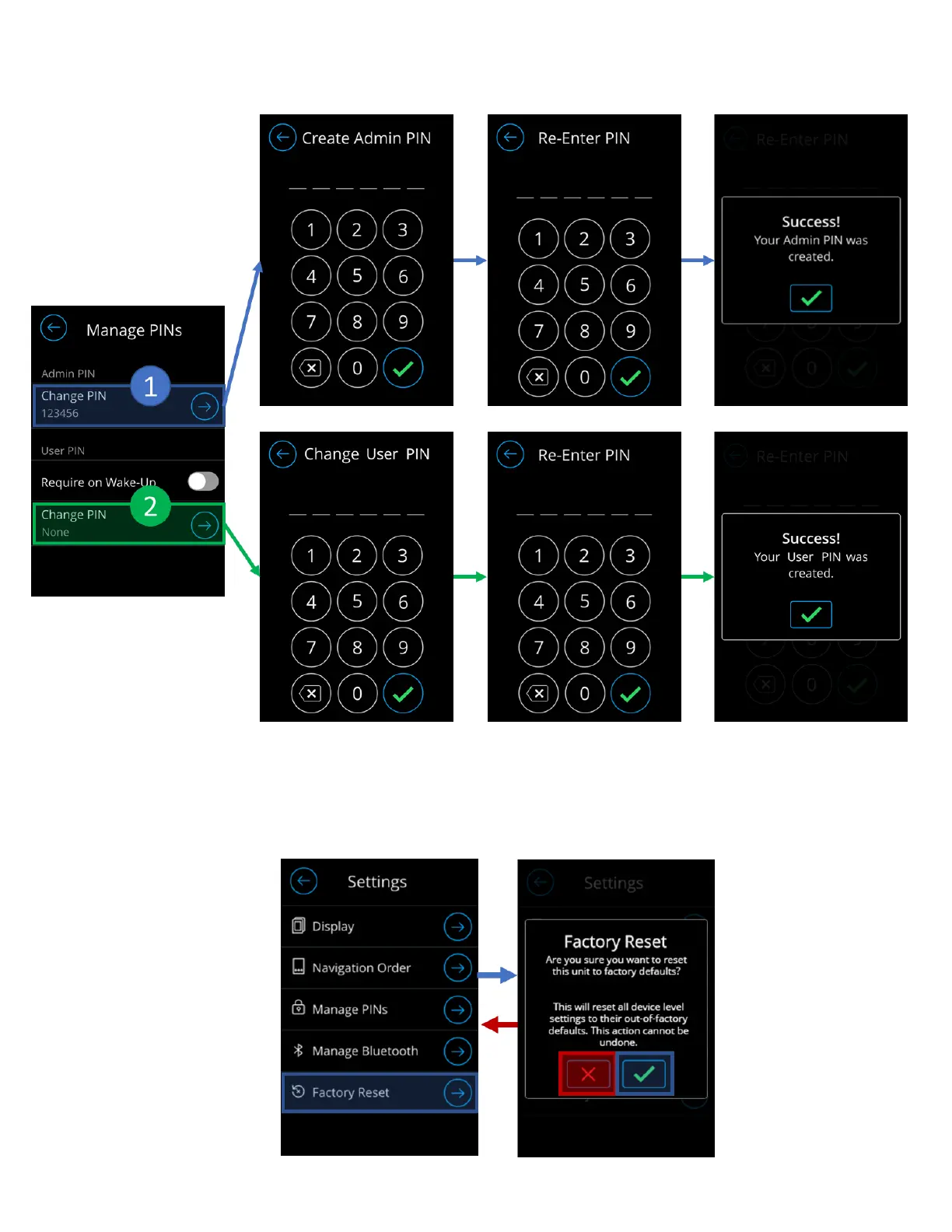 The on-screen factory reset can be triggered using the following workflow. Upon selection, users will be prompted to
