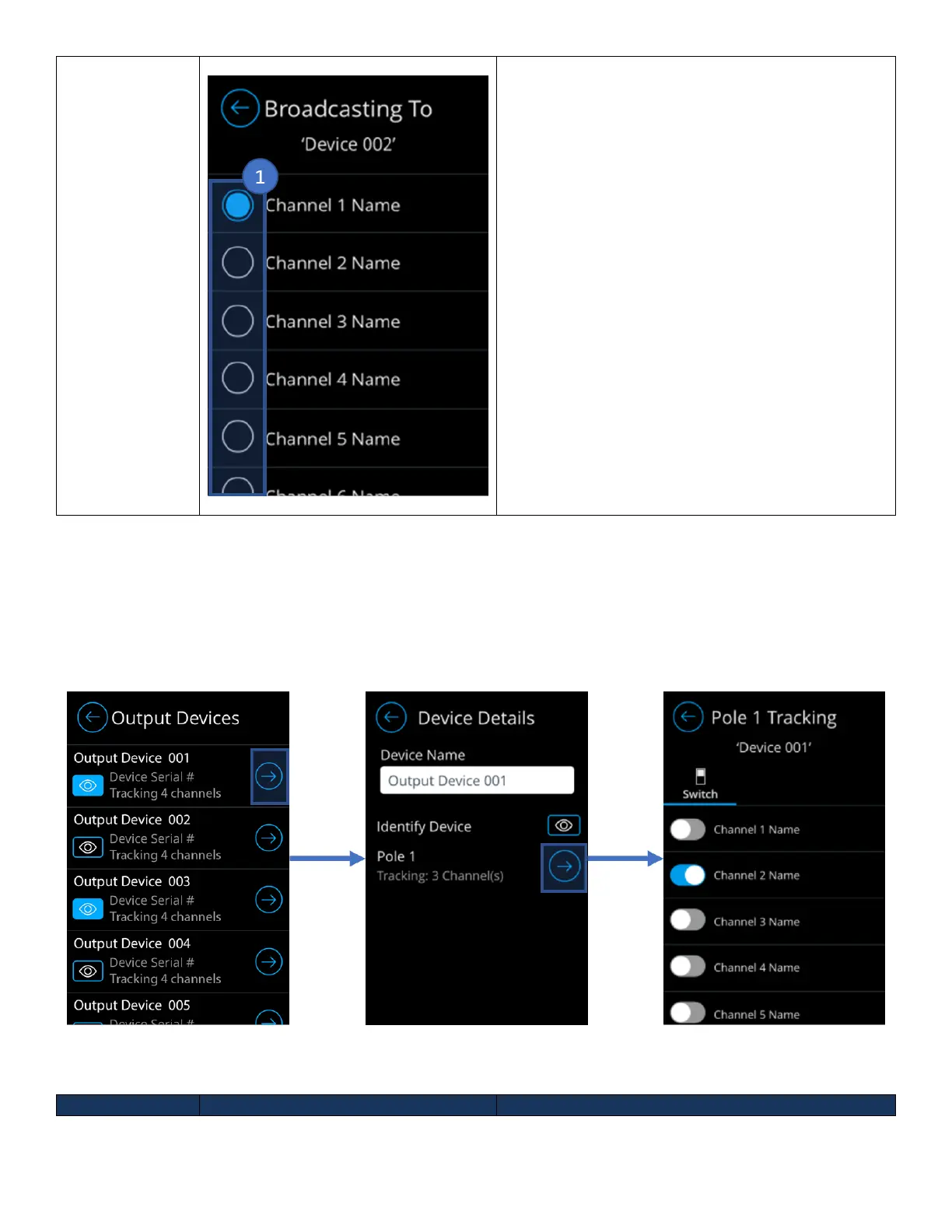 The Device Broadcast Channels screen enable the