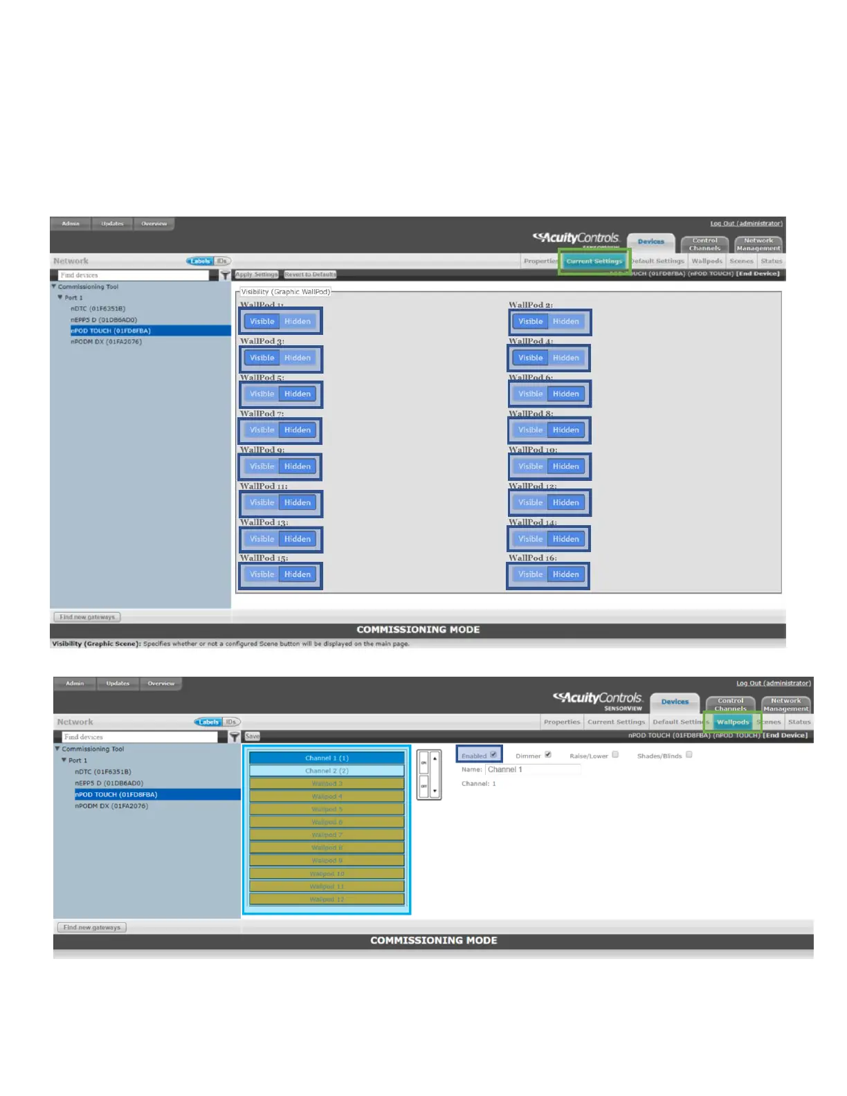4. Set the wallpod(s) as “Visible” in the “Current Settings” tab