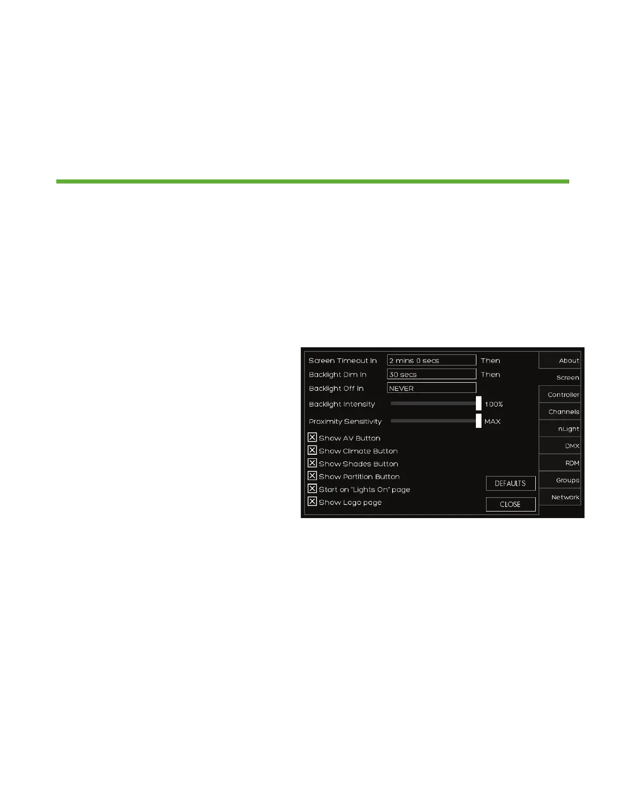 DEFAULTS sets all screen behavior