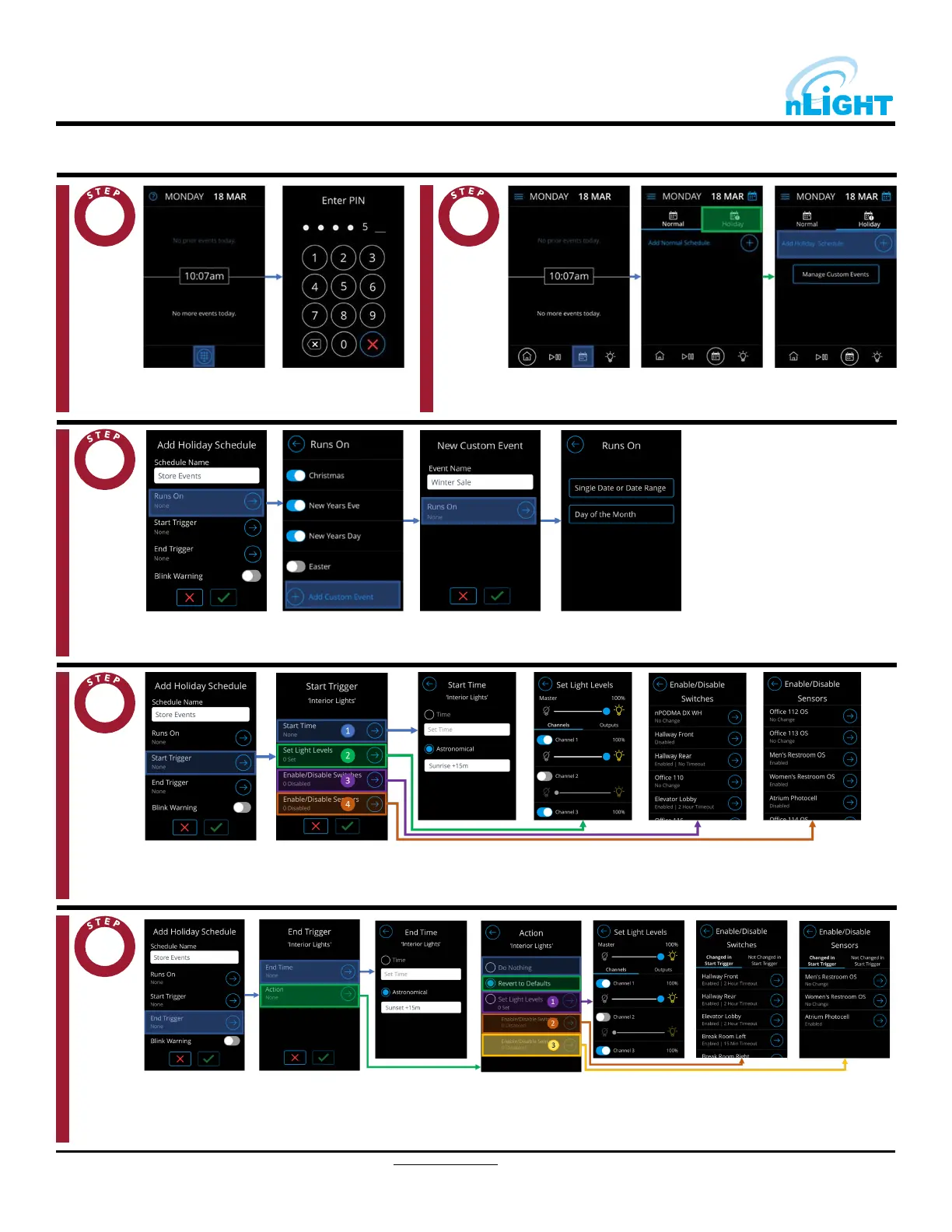 date(s) when the start event should begin. Users will also be able to Set Light Levels to either channels or individual output devices connected to the