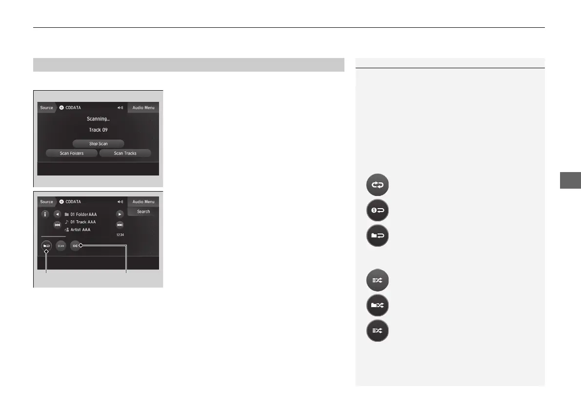 You can select scan, repeat, and random modes when playing a track or file.