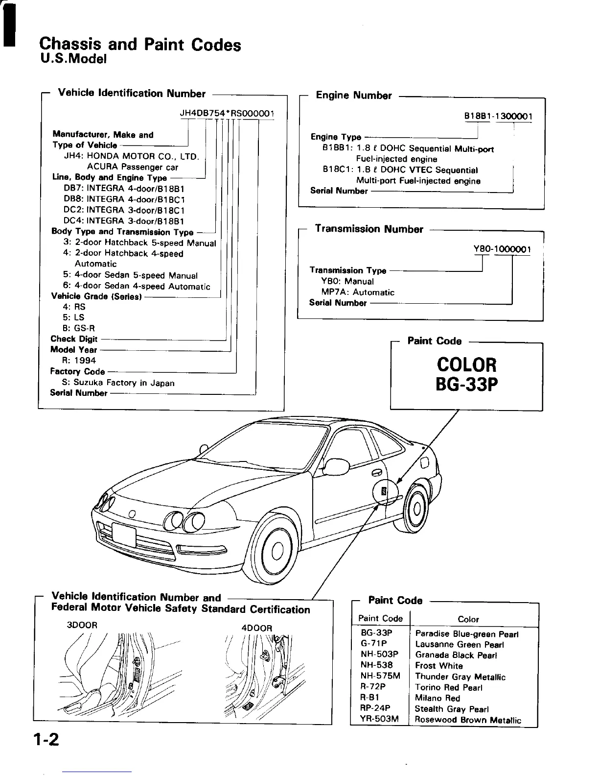 Acura Integra 1997 - Chassis and Paint Codes
