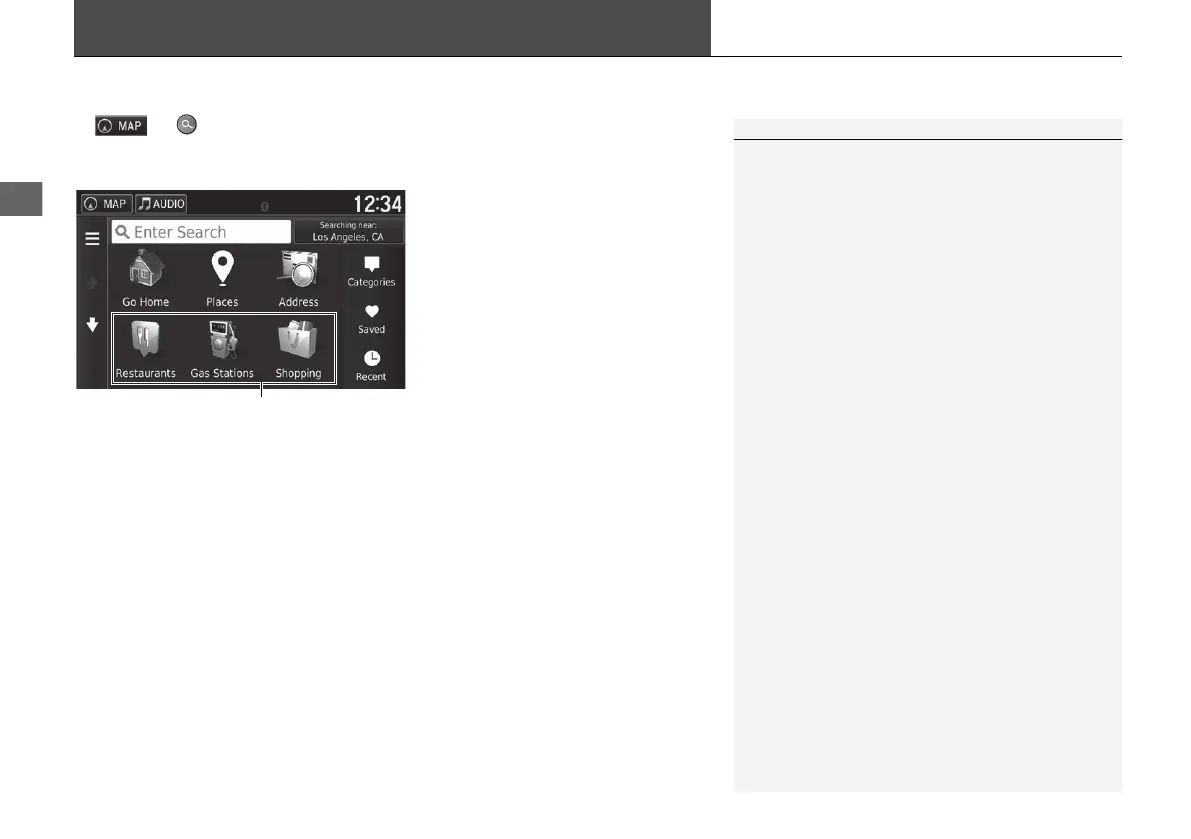 • Enter Search: Sets a destination by entering a category, name, address, or city