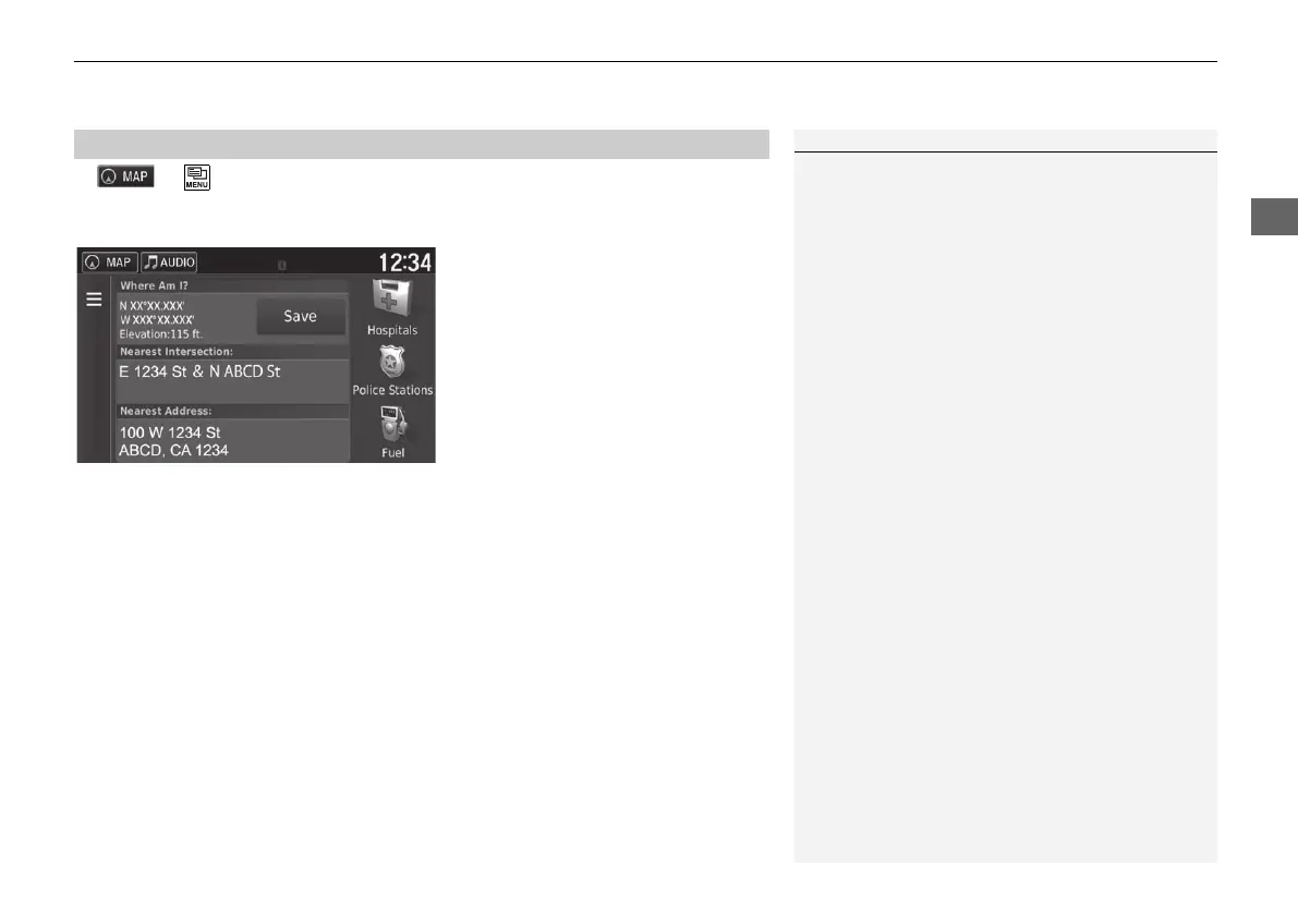 • Hospitals/Police Stations/Fuel: Searches for a hospital, police station, or gas