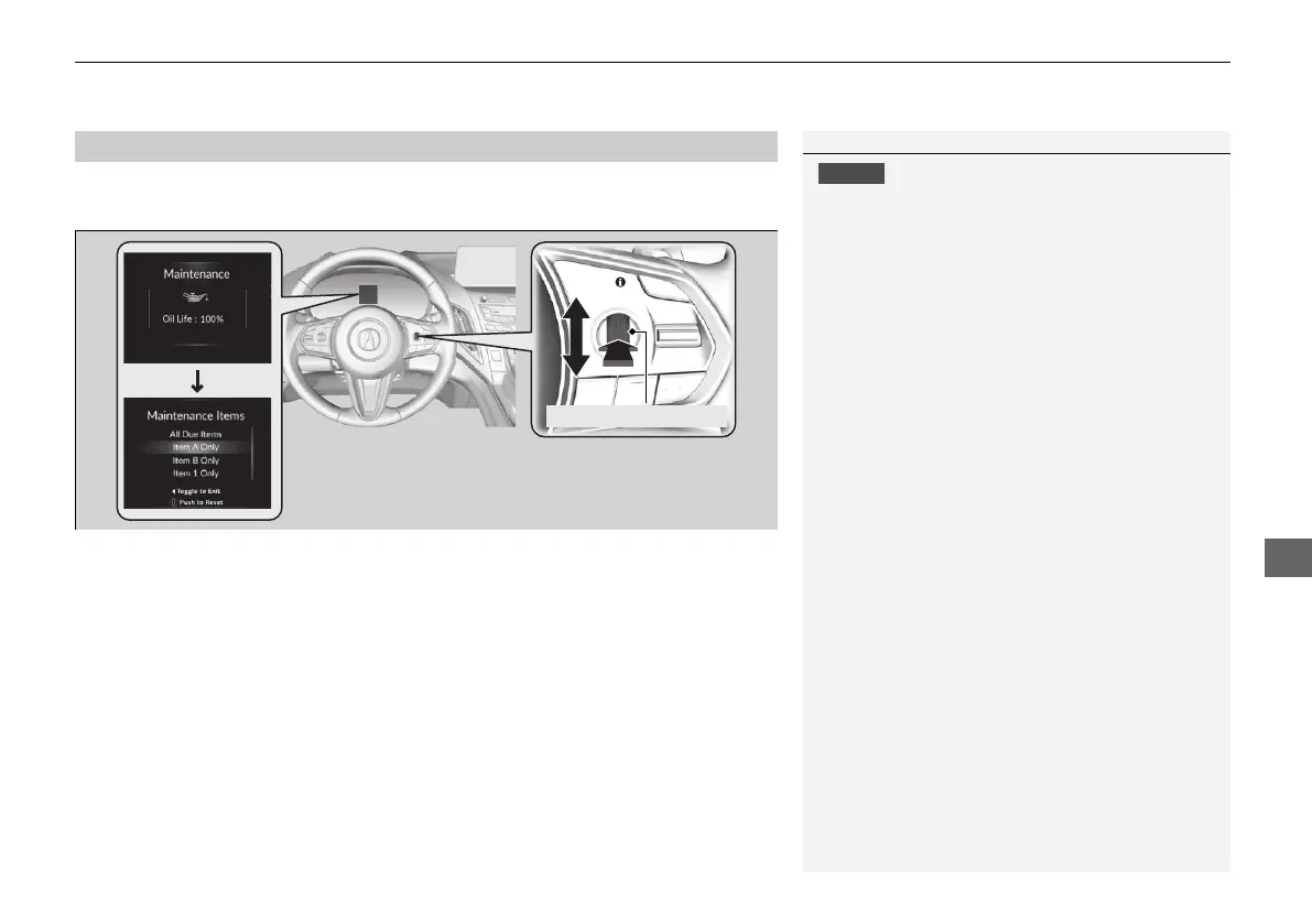 5. Roll the right selector wheel to select a maintenance item to reset, or to select All