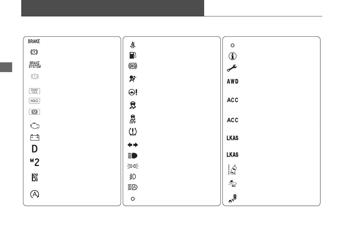 has started. If an indicator does not come on or turn off, there may be a malfunction in the corresponding system. To resolve the issue, follow the instructions in the