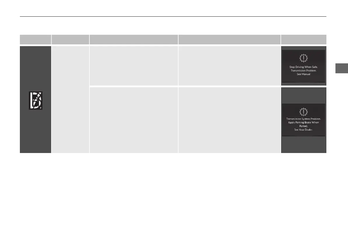 Indicator Name On/Blinking Explanation Message