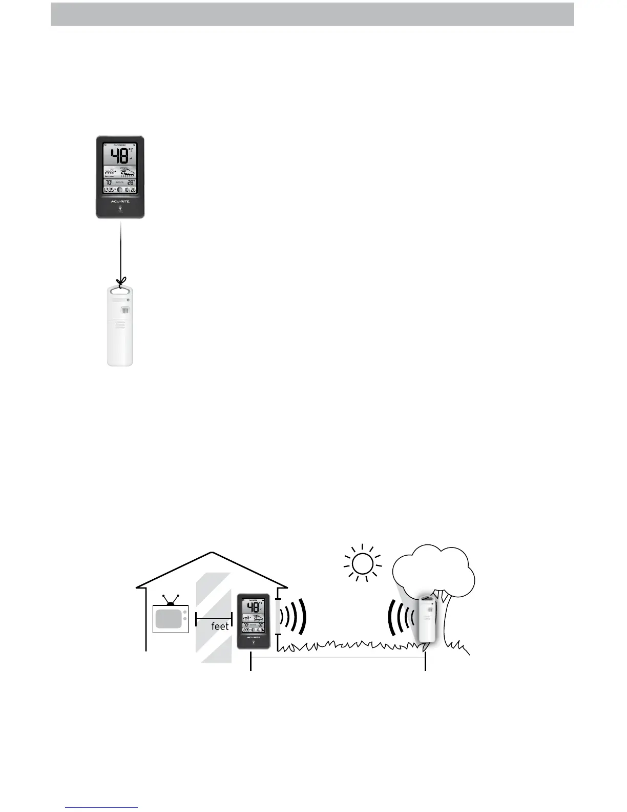 • Display unit and outdoor sensor must be within 165 ft (50 m) of each other.