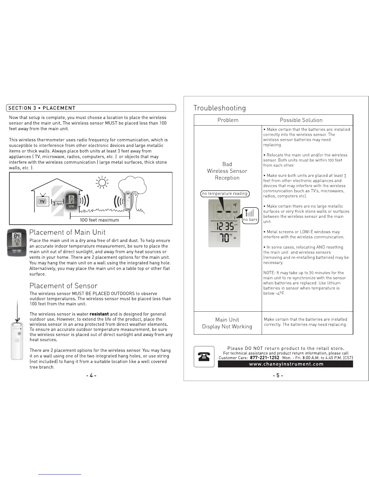 AcuRite 00606 - Placement; Main Unit Placement; Wireless Sensor Placement; Troubleshooting
