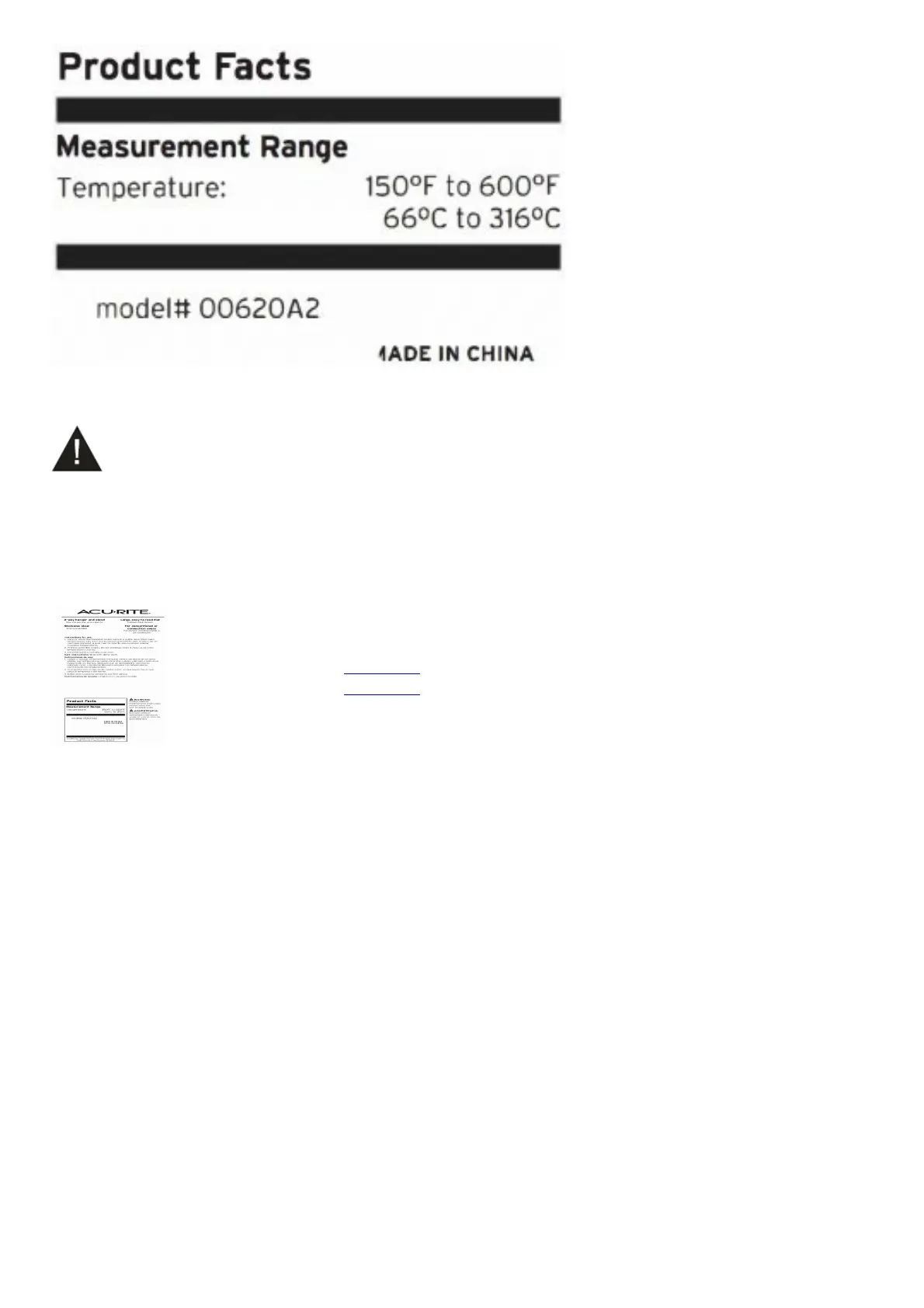 1. ACURITE Oven Thermometer Instructions ACURITE Oven Thermometer Instructions INSTRUCTIONS FOR USE: Hang
