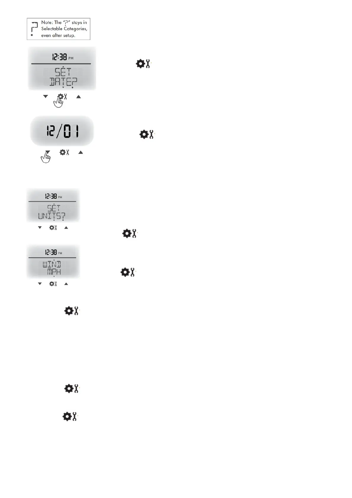 1. Press the “▲“ or “▼“ buttons until “SET DATE?” is displayed on the Selectable