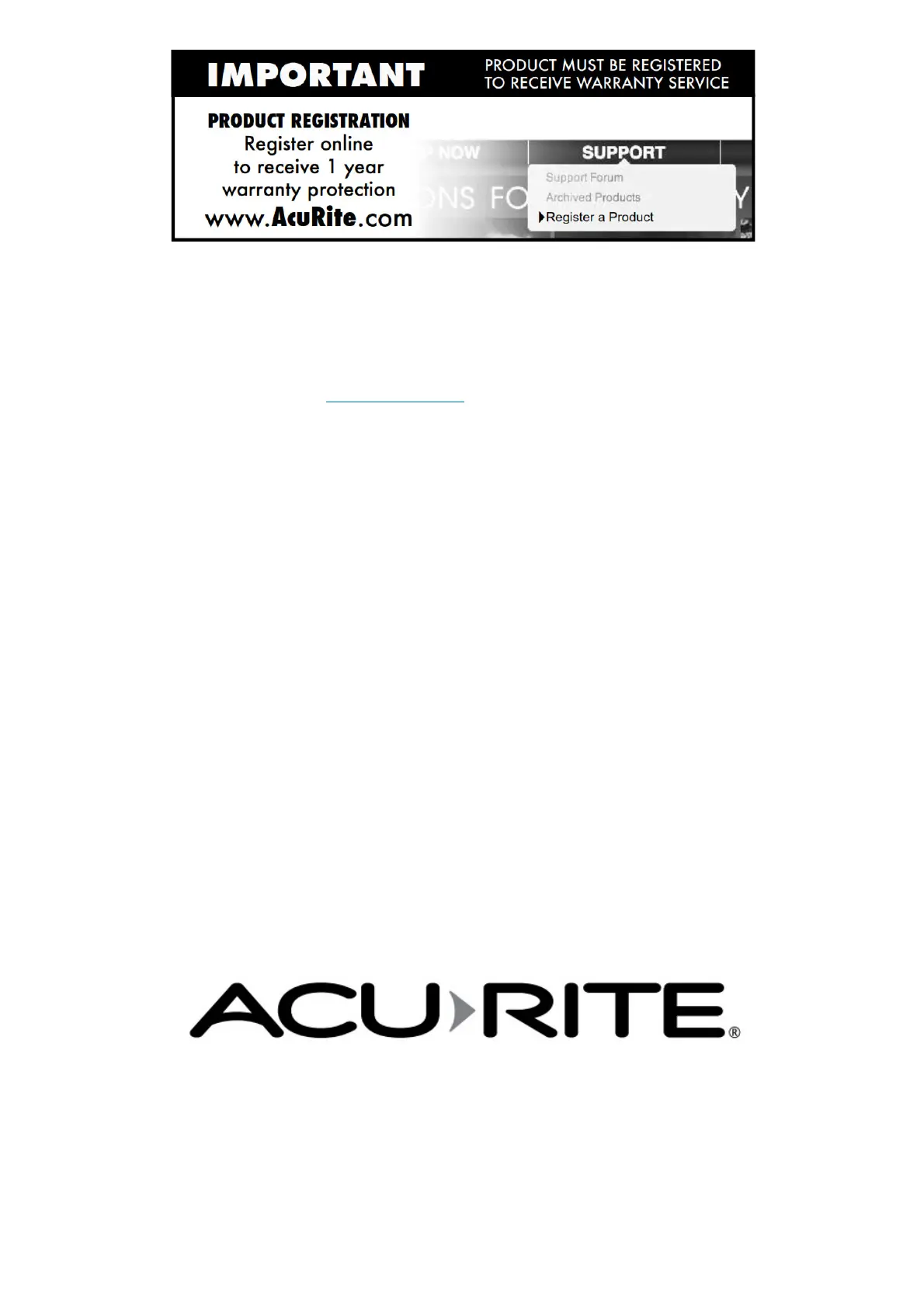 We recommend that you visit us at www.AcuRite.com for the fastest way to register your product. However,